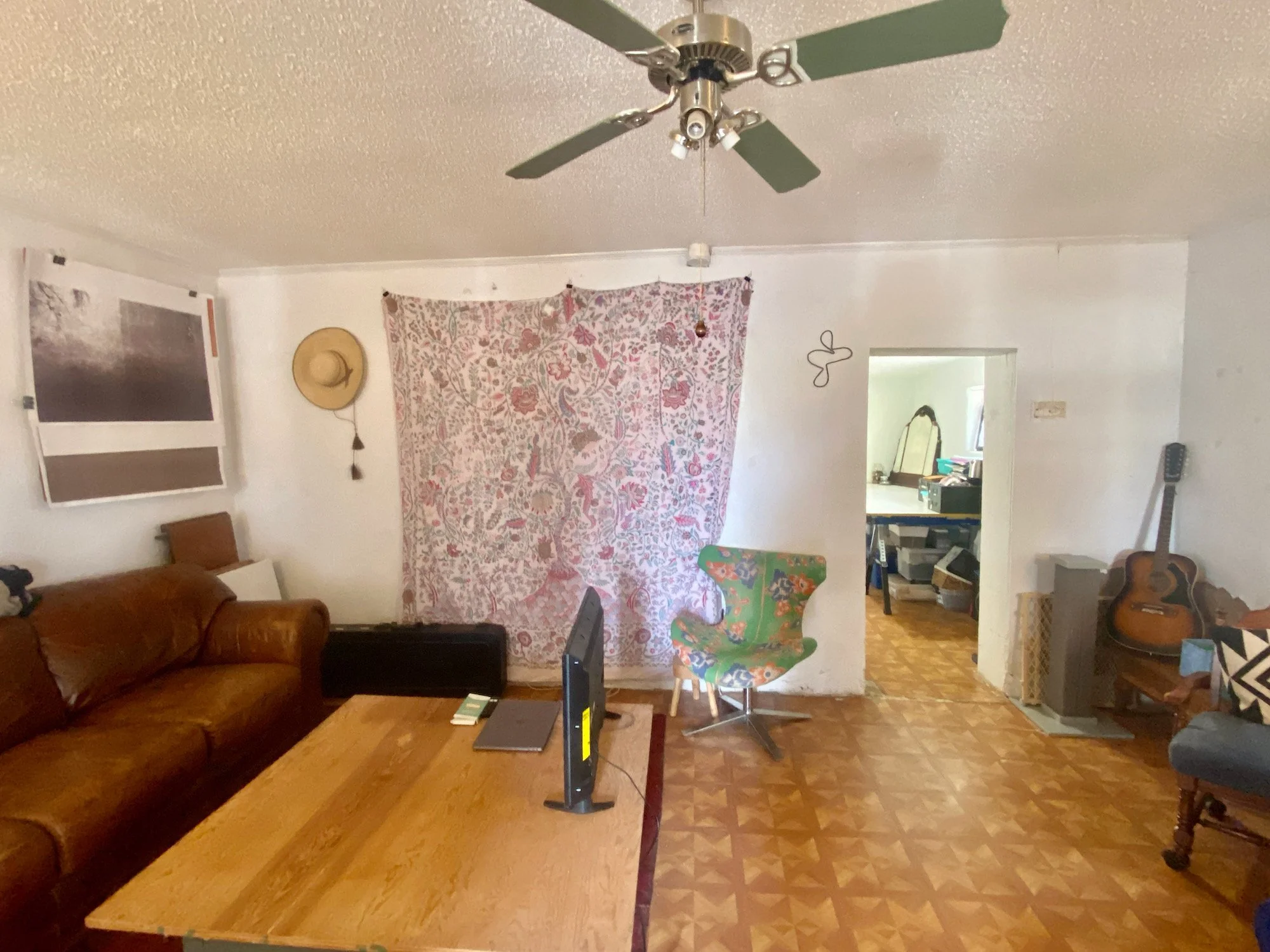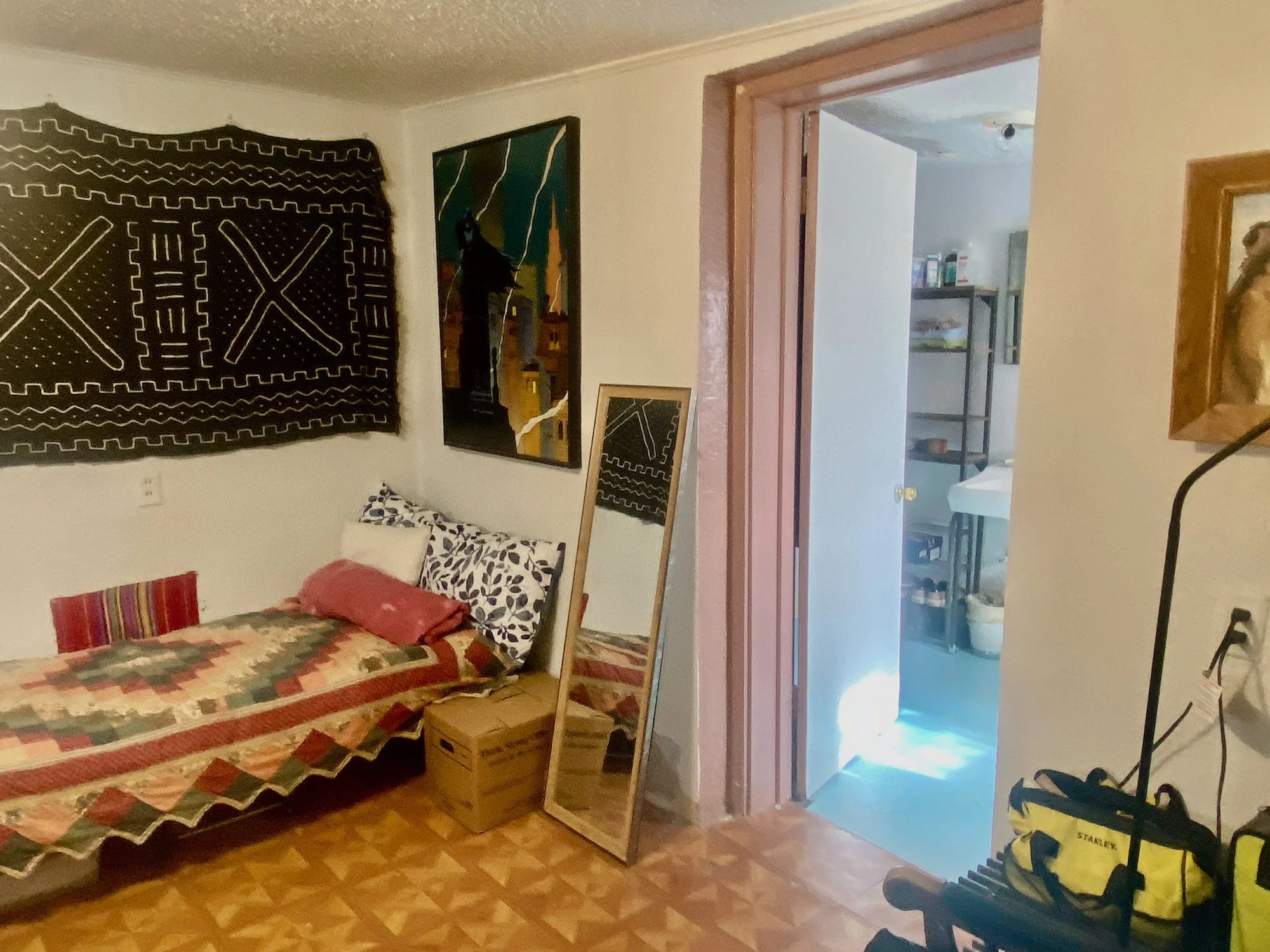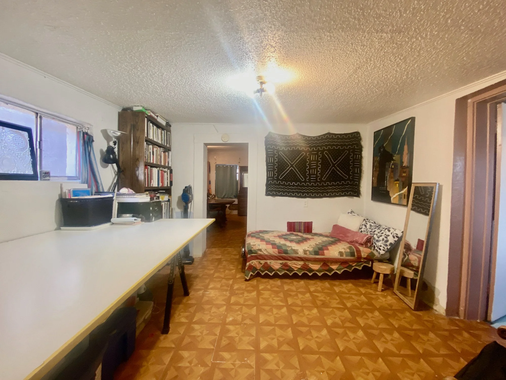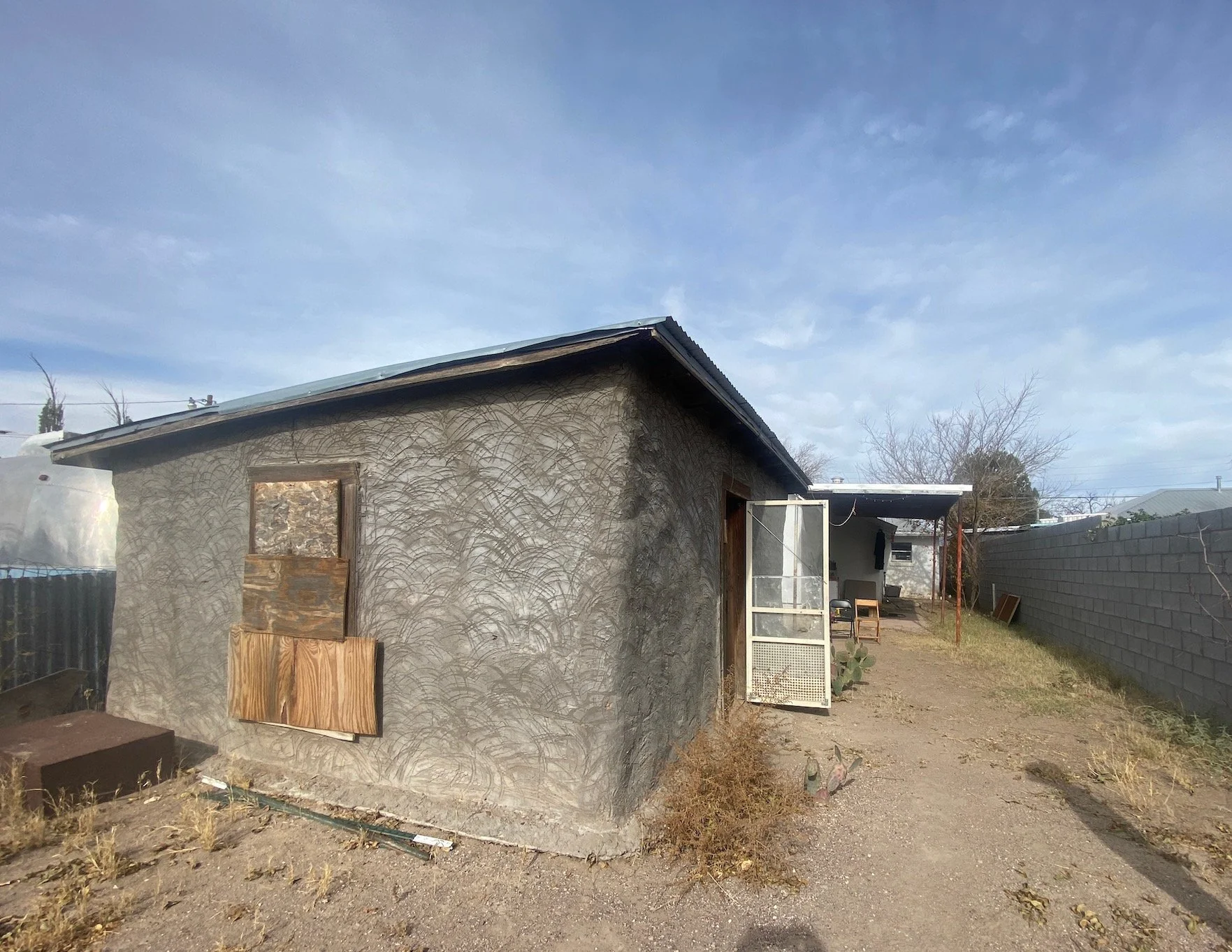 An adobe shed in the backyard was configured to be an artists studio but could also be fitted out to be an addition guest room if desired with alley access providing a separate entry.