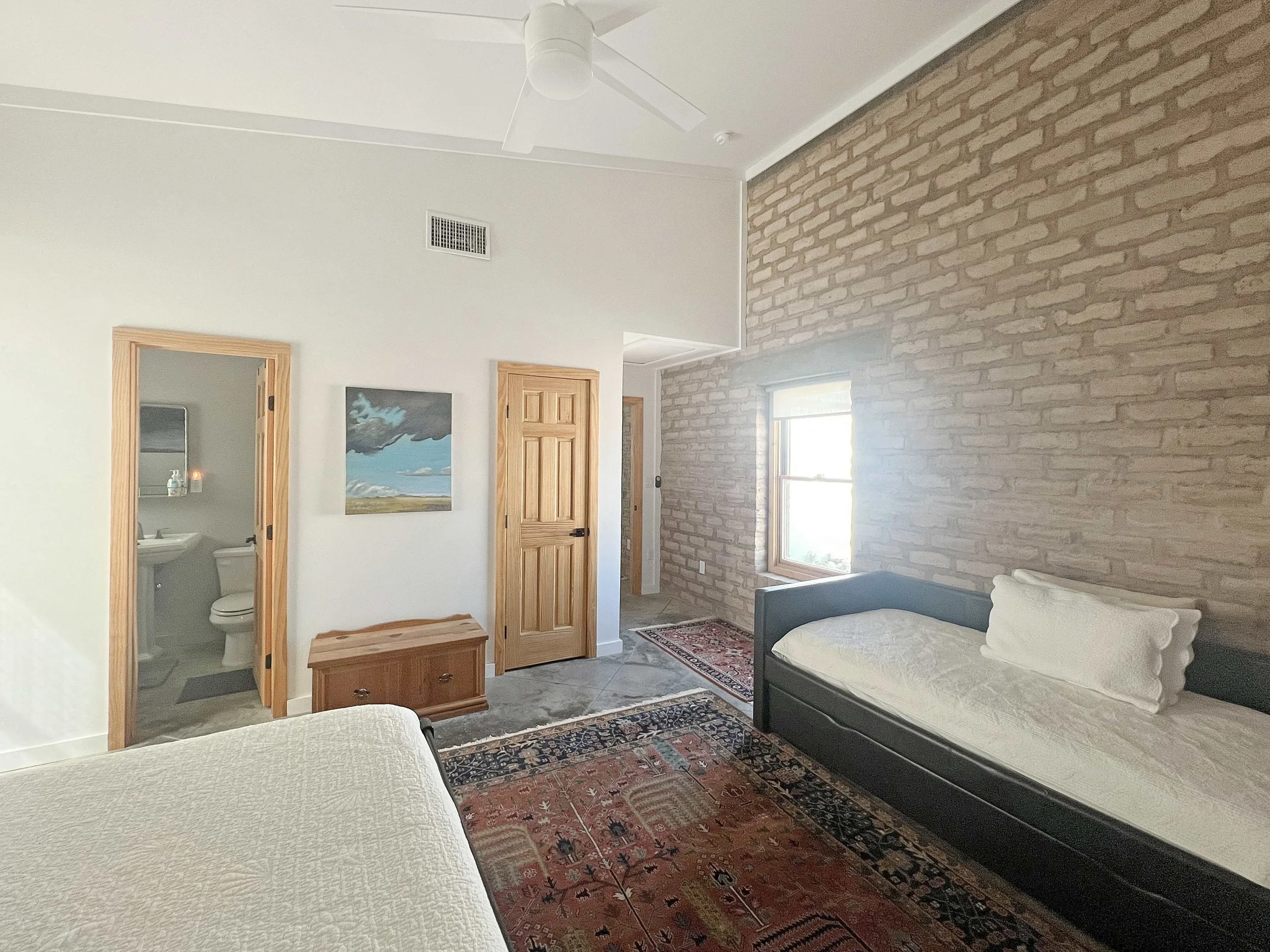 Experience total privacy & solitude with unobstructed panoramic views in this beautiful modern adobe on 15 acres. The centrally located main house is connected on either side to a casita and studio. Property consists of 5 bedrooms and 5 baths. Located on some of the most desirable lots in Antelope Hills with privacy to the street and a backyard overlooking the mountains. Adobe was made with earth sourced from the property and the wood features from Santa Fe. This home is meticulously maintained.