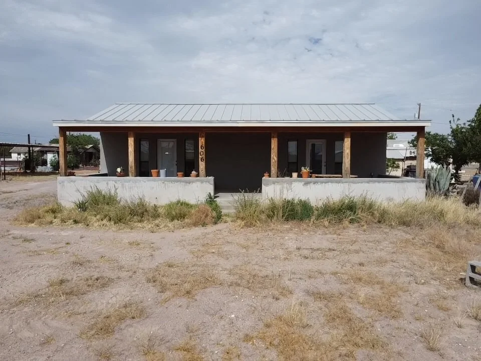 Overall, this home is a perfect blend of style and practicality, offering a comfortable living space in a peaceful setting. This property also features an expansive west-facing front porch, perfect for enjoying stunning sunsets and the wonderful West Texas evenings. The deep porch with a high ceiling serves as an ideal area for outdoor dining or simply relaxing, providing a seamless extension of the usable space and beautifully accenting the interior rooms.