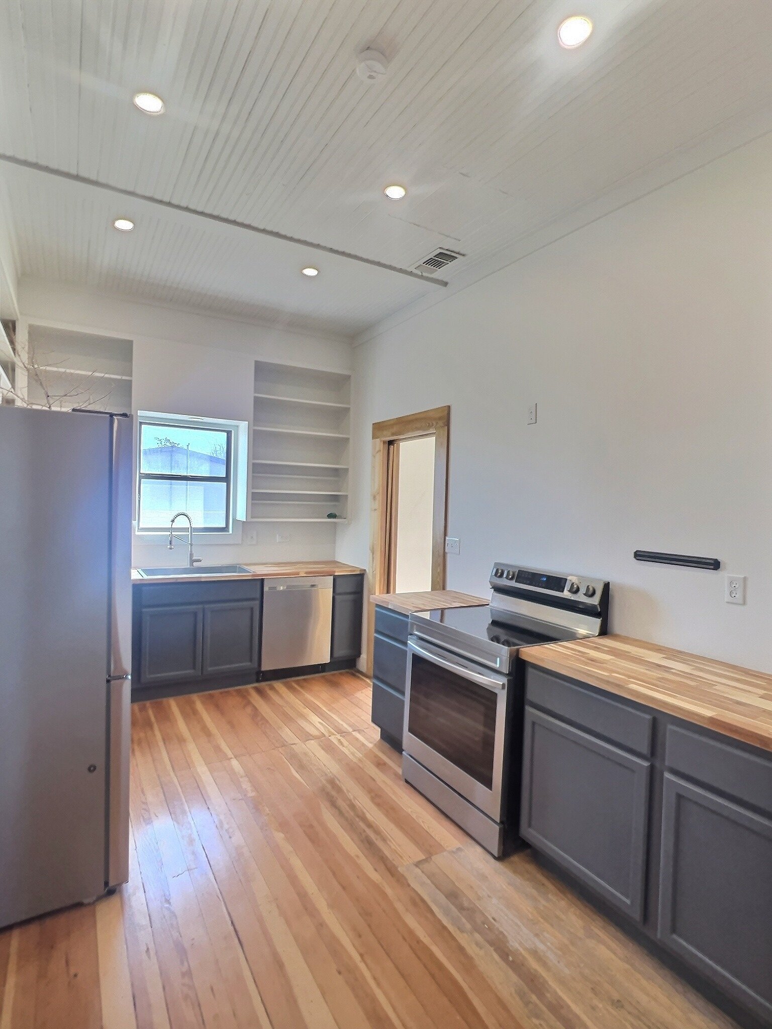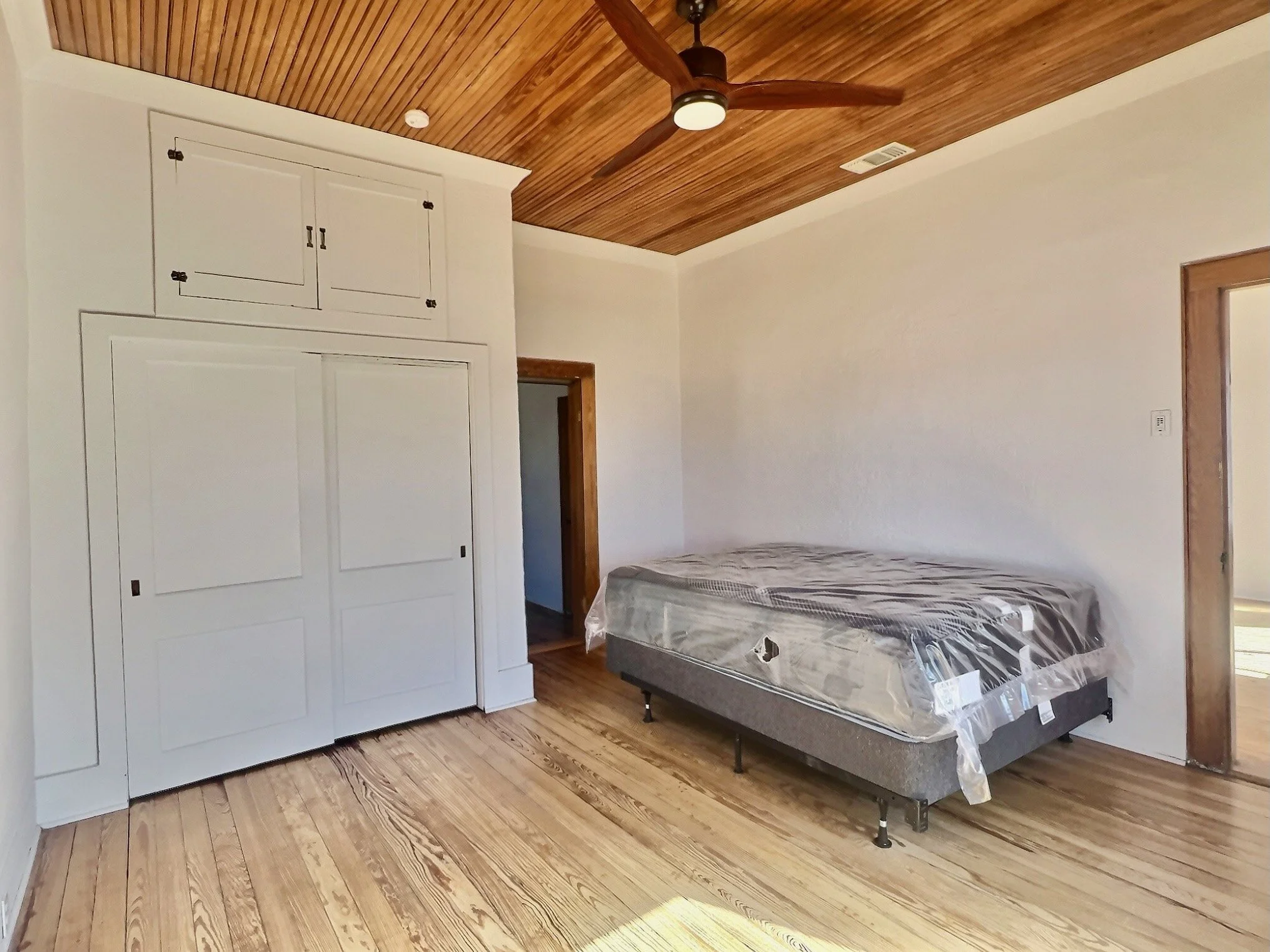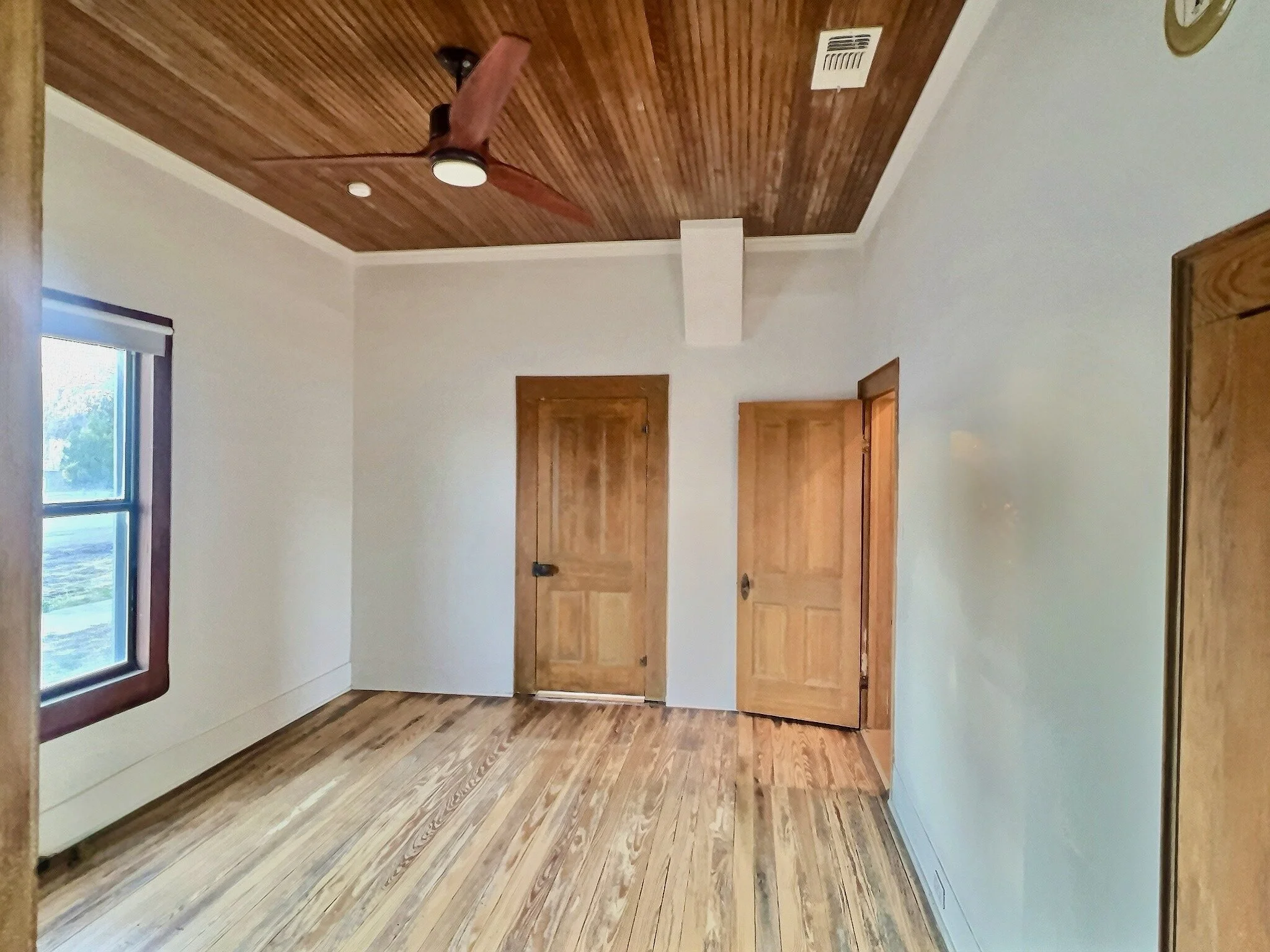 Upon entering, you'll be captivated by the warmth and character exuding from the hardwood floors that have been redone. The main living areas feature high ceilings adorned with elegant wood molding that has been expertly stripped of old paint and finished with a clear coating, preserving its original beauty. Ceiling fans have been installed to keep the spaces cool and comfortable.