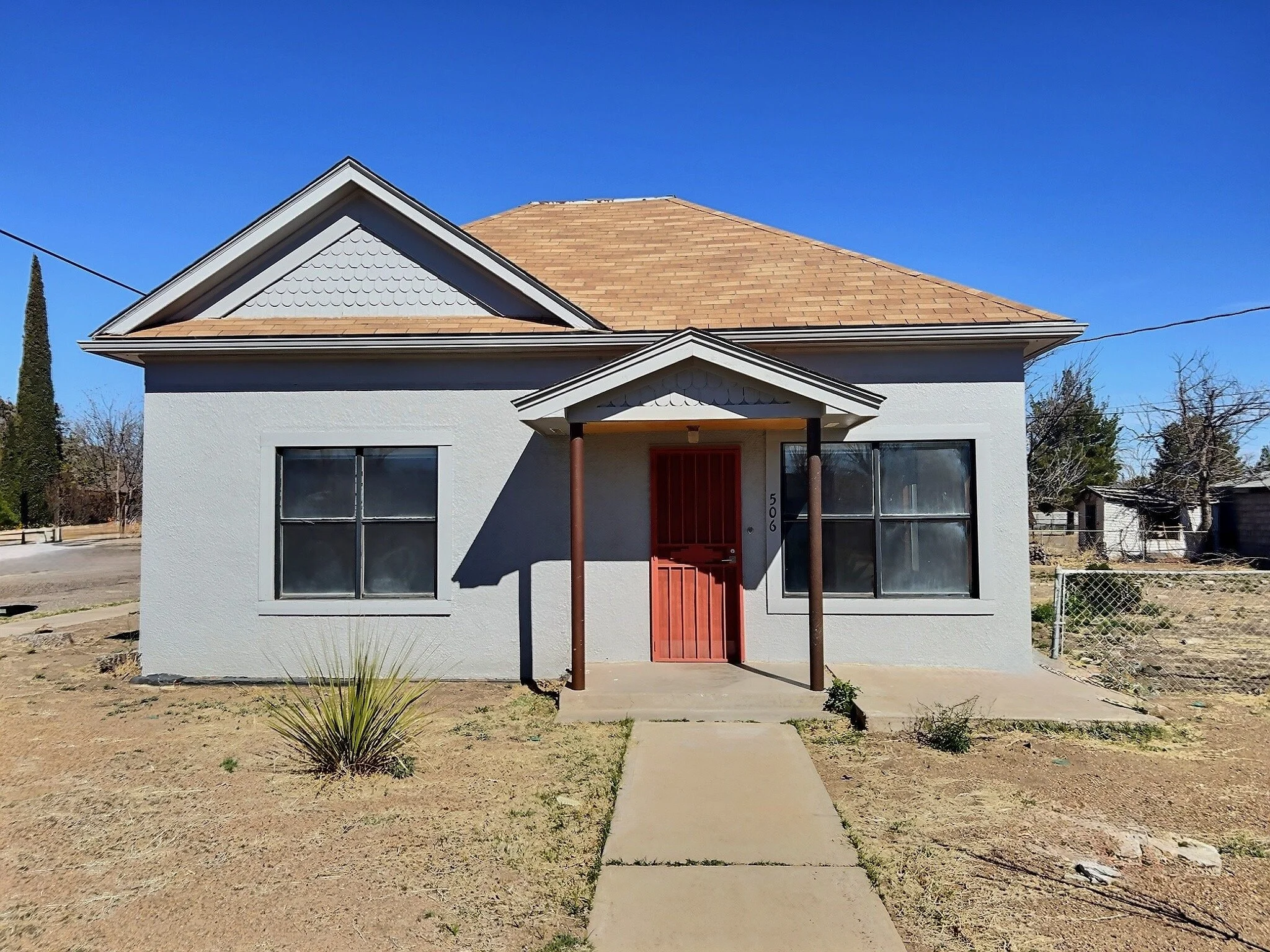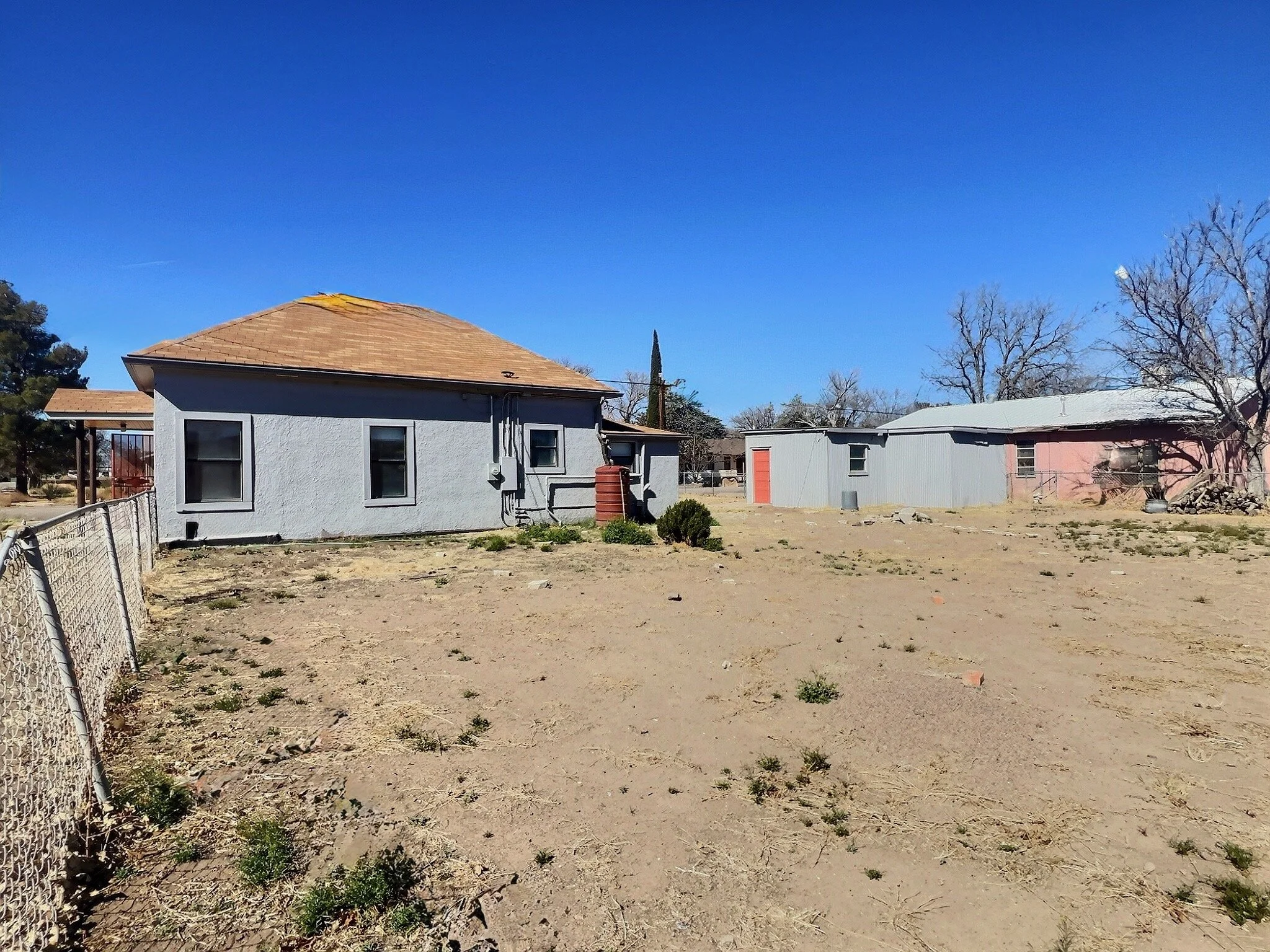 In harmony with its natural surroundings, the front yard is has low-maintenance desert plantings. Raised beds can be redone to have a nice home garden. A rain catchment system has been implemented to collect and store rainwater, ensuring an eco-friendly irrigation solution for the garden.